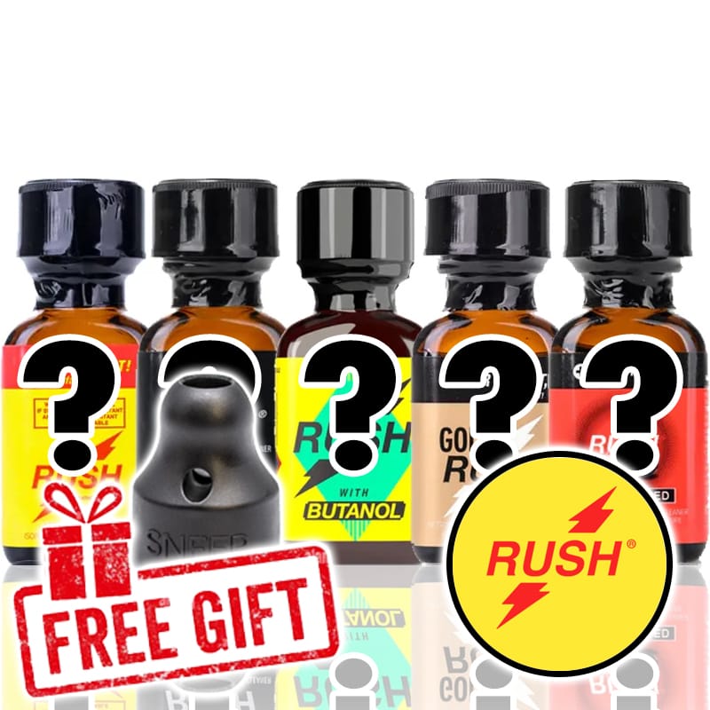 Vervollständigen Sie Ihre Party mit dem Rush Poppers Party Pack 5 x 24ml! Kies zelf vijf flesjes Rush 24ml uit onze uitgebreide lijst met verschillende varianten. Voeg een persoonlijke touch toe aan je feestje met jouw favoriete Rush soorten. Profiteer bovendien van een gratis XTRM SNFFR im Wert von €9,95 mit Ihrem Kauf UND erhalten Sie 15% extra Rabatt pro Flasche!